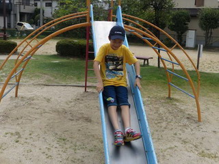 滑り台。何回も。興坪には無くて、子供には体験が。