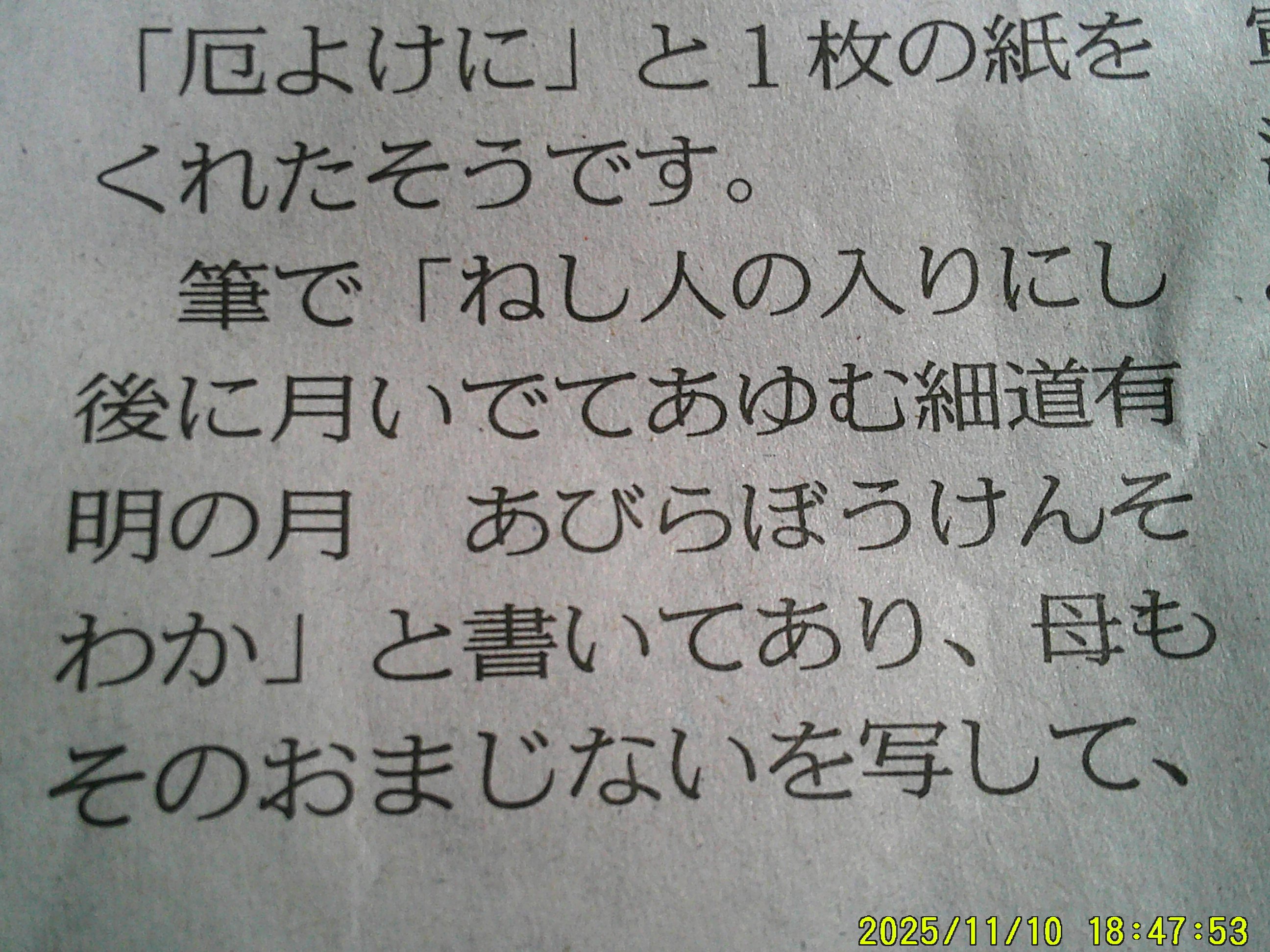 「ねし人の入りにし後に月いでてあゆむ細道有明の月 あびらぼうけん そわか。」
