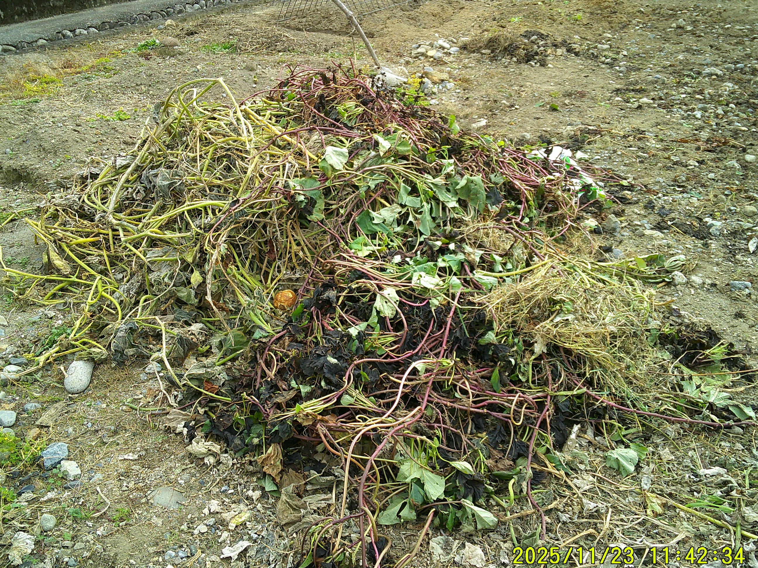 おばあさんが その雑草を。私も手伝って 一汗かいて ご協力に。
