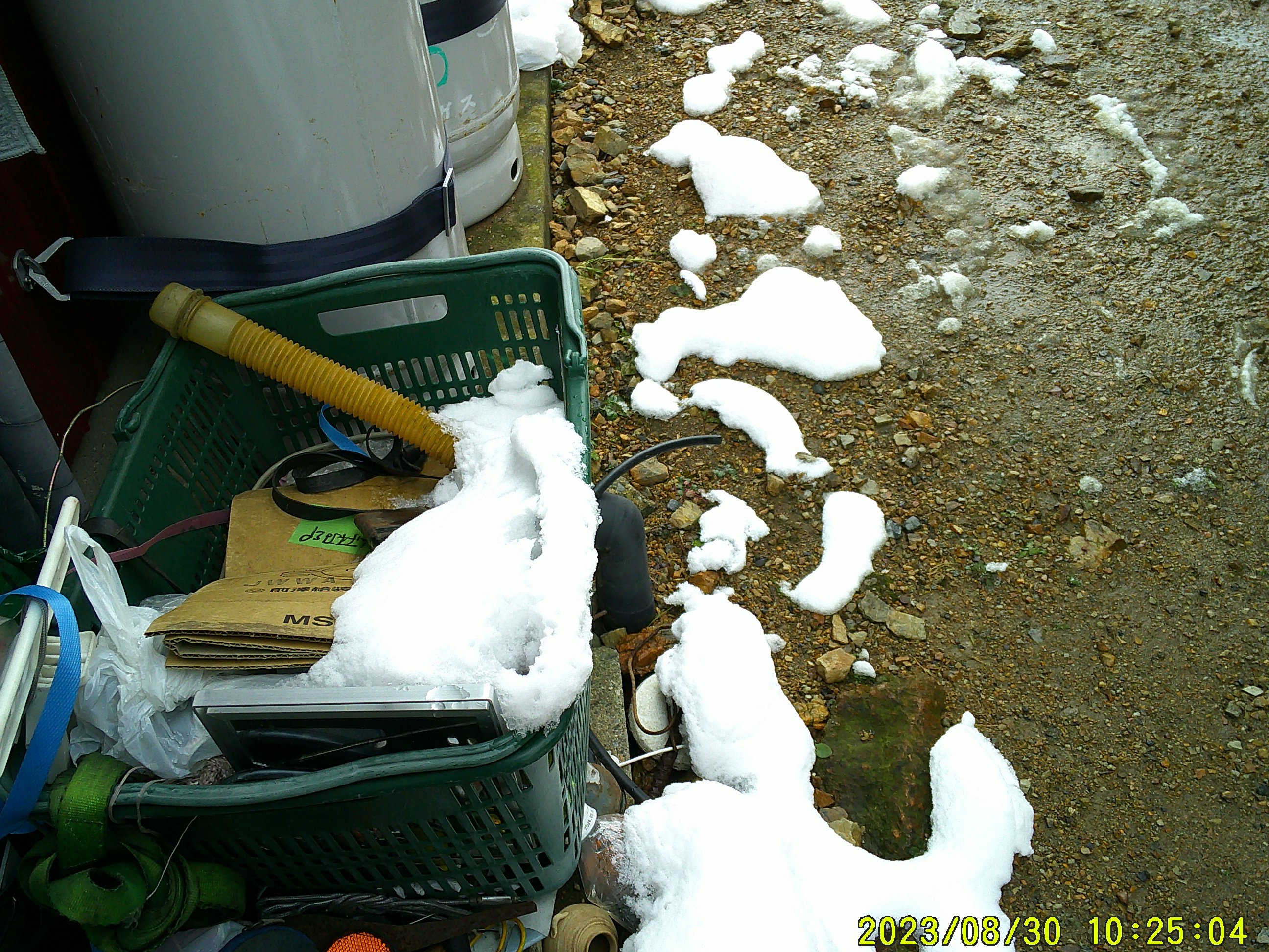 8日、雪降り、雪化粧。(1)投票所の雪、滑りやすく スコップで奉仕??