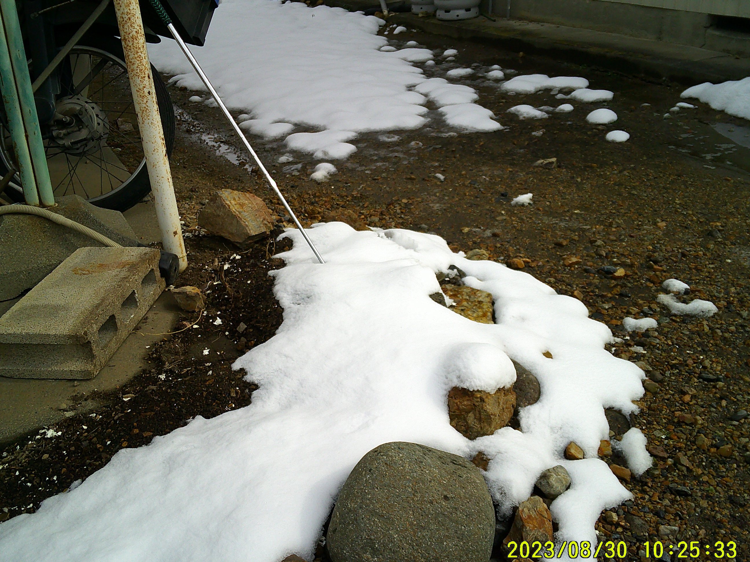 拙宅の庭? 雪が。