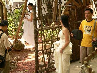 欧米人の注文撮影で、映画かTVCMかは不明。現場には電線がなく、水面がキレイで、石山と竹林がバック、撮影条件が最高な場所。現場にクレーン車が入る為には花壇を乗り越えての進入でしたが。老街でも映画ロケ、石山風景でも映画やTV取材が多数の田舎「興坪」。