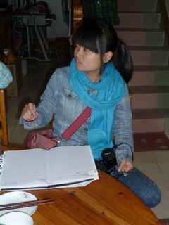 31日、上海からの学生団体さん17名の御昼食。喜多郎「お手伝い」料理を運ぶ! 今回が始めての 料理皿の運搬役でしょう。人気者です。