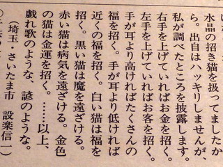 月めくりの、右手の「招き猫、カレンダー」を毎年いただいて。「週刊新潮」平成16年8月5日号 P90、掲示板(2006年かな)古い週刊誌で「招き猫」の詳細を初めて知る(私が アホかも)、