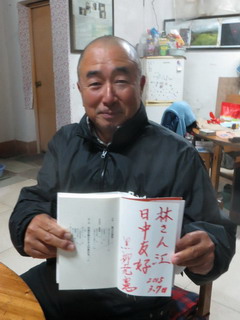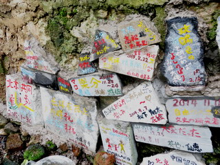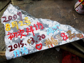 再来の記念に石板を。性は私と同じ 林春ランさん、金色で入れました。
