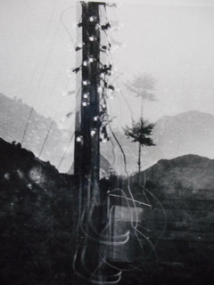 ヒマラヤ山中の チョモロン村に、豆電灯が灯って。小さな水力発電での電灯です。沢山の豆電灯が 電柱に。 これで 全戸に 豆電灯が灯せる 証しとして。