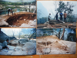 対岸の水力発電建設地に 太いパイプを接続して、記念写真に。 後ろの黒い岩に、SHS、アンデイ ウオホール。日本人女性の名を刻んだ、宮崎さんからは 何十万円かのカンパを受けた、横浜の人で、後日 前妻と 御訪れた記憶が。