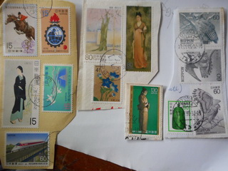 日本の 未使用な切手も出てきた。経済的に行き詰た時に 郵便局で換金して 食い延しにか、、、、