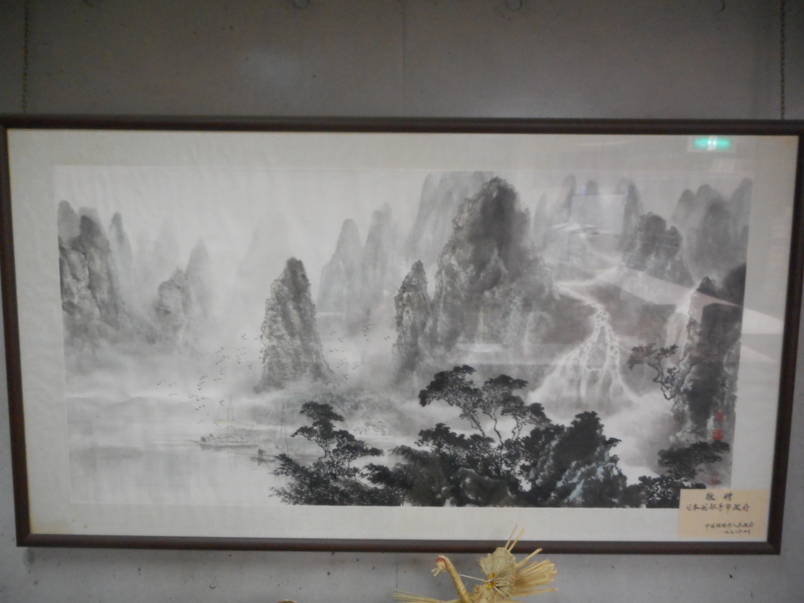 23日、夕方、知人達の不在者投票にお付き合いして、始めて 取手市役所に。そこで偶然に「墨絵」発見、それも桂林市人民政府から 1993年に贈られた絵画に 私は驚いた。私が桂林 興坪に始めて行ったのが 1996年、それよりも3年も前に 「この墨絵」が桂林市から 取手市政府に贈られていたのだ。