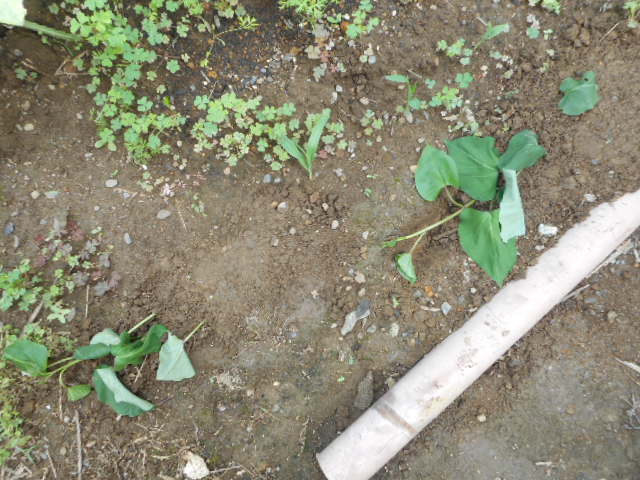サツマイモに「脇ツル」が伸びて。