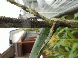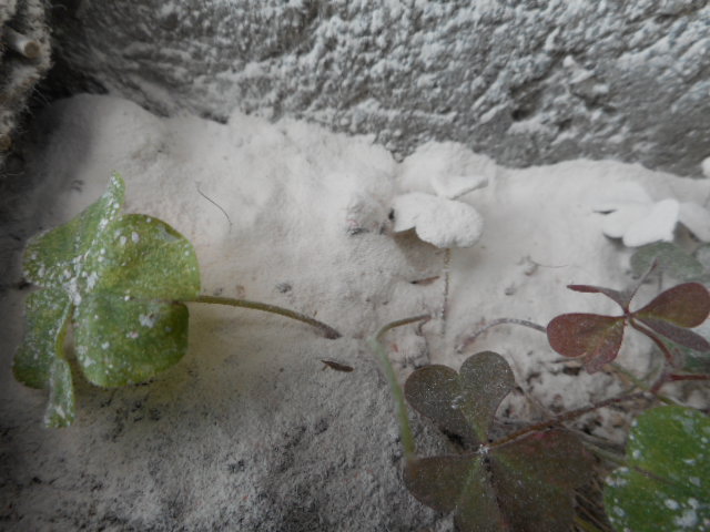 左の「根」に白い網状の幕と云うか、模様が(写真が下手で済みません、太陽光線の下での 失敗)、「根粒菌」は どんな状態なのかな?「窒素固定」の現実は??