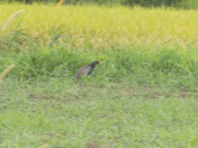 バイクだと、15mで逃げていくが。稲刈り機では2m3mに。安心で。間もなく終わる稲刈り。