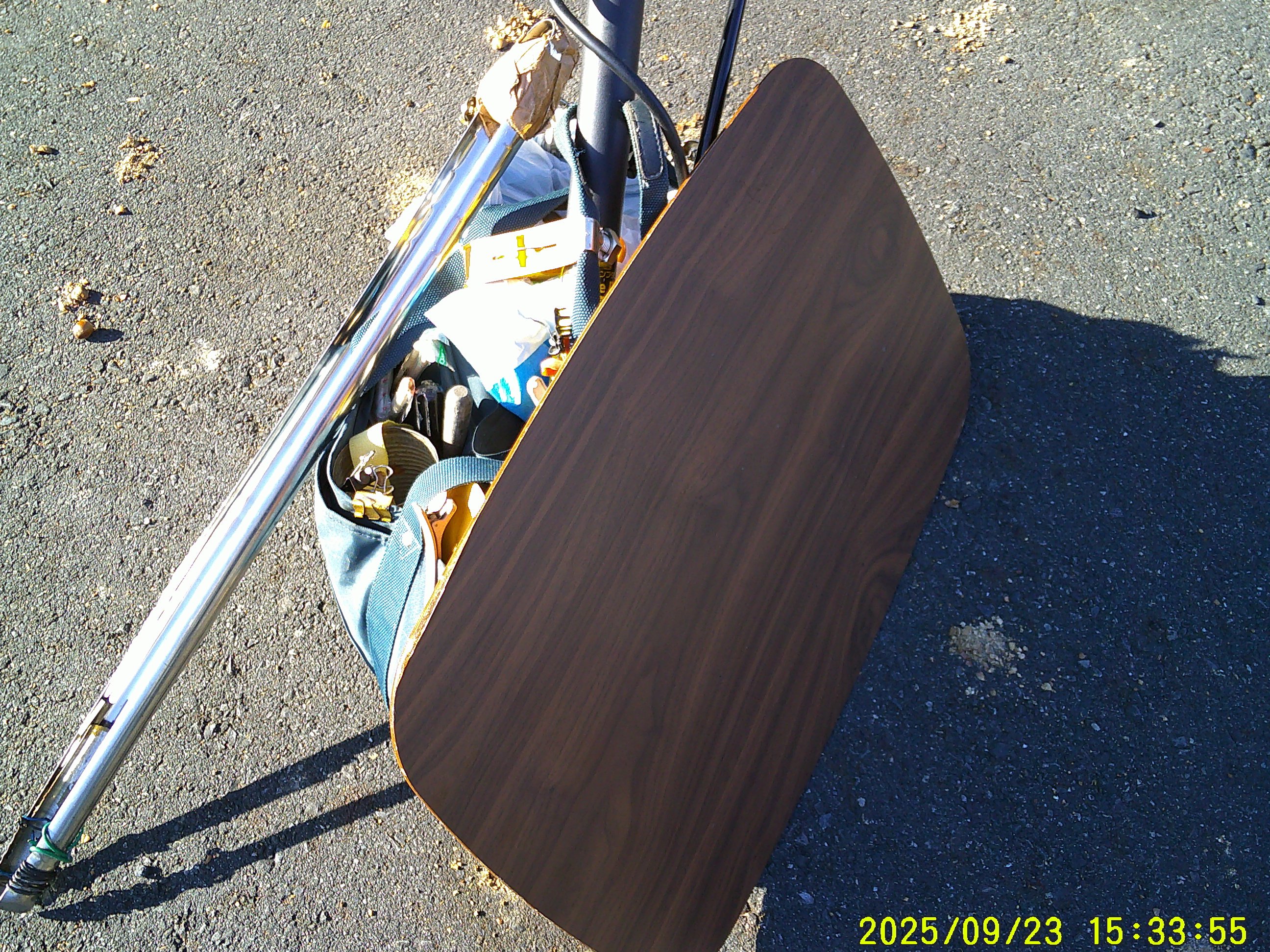道端に 栗の実。折り畳みテーブル。空気ポンプ。