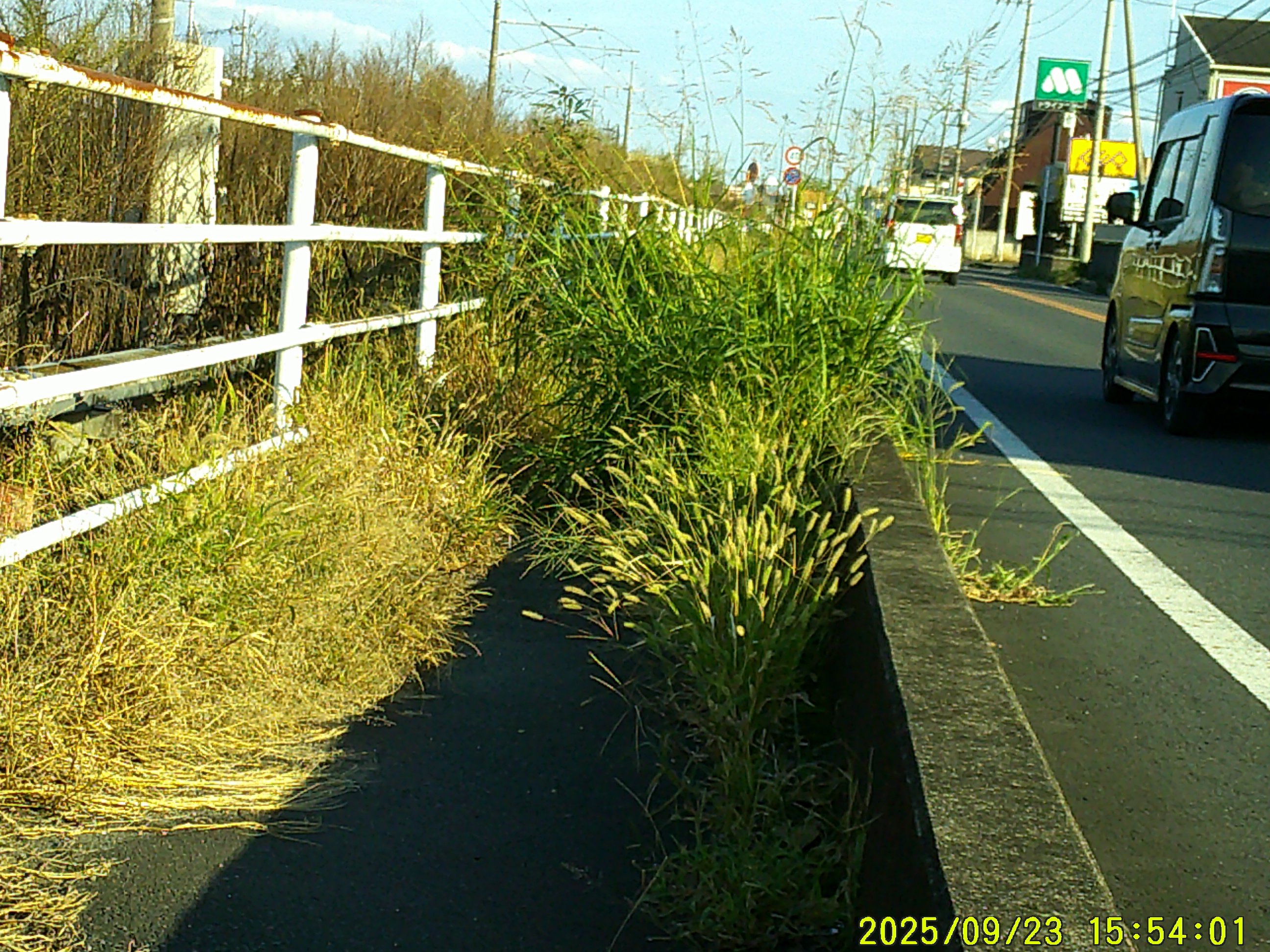 67号の歩道。雑草が タップリと。誰かが、、、