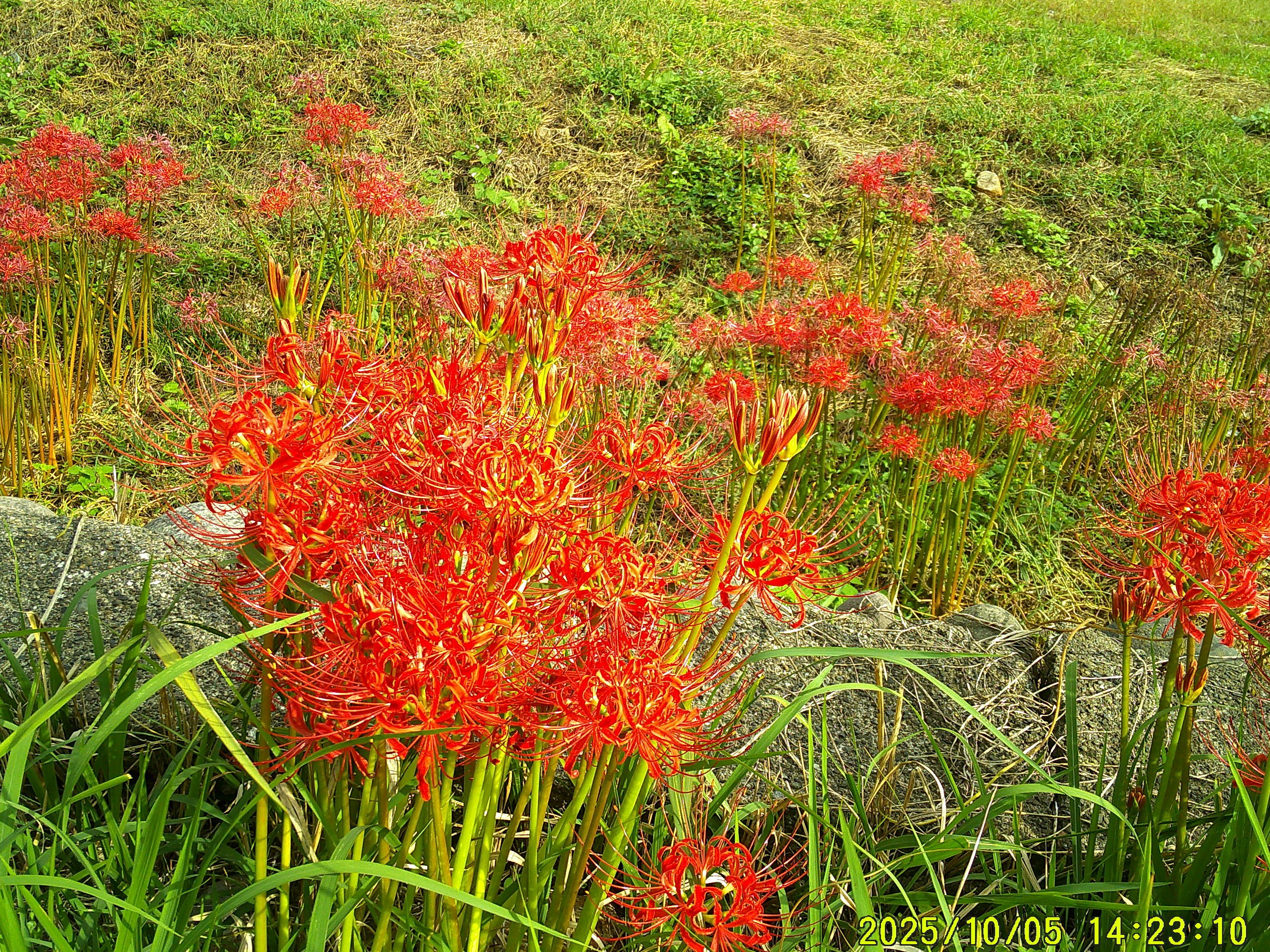稲の穂、稲穂。 赤い花は彼岸花、ヒガンバナ ? 自信が無くて、、、