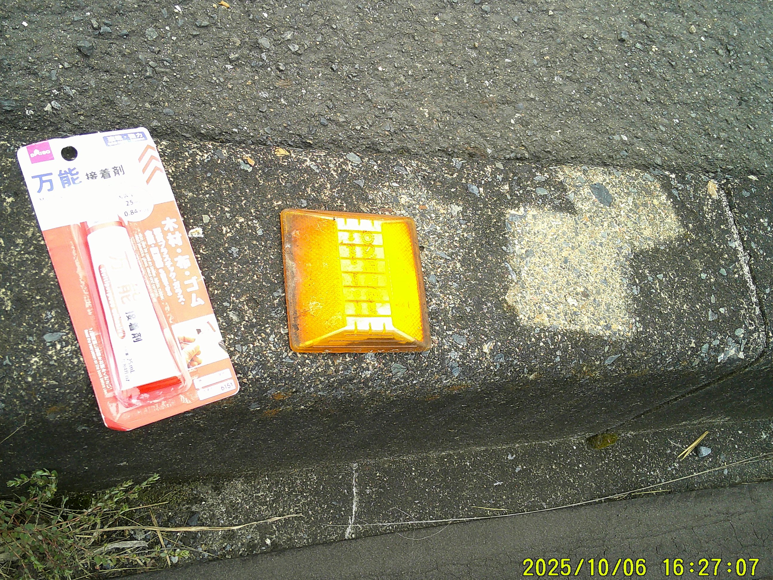 ゴミ拾い中に 幾度と見ていて、ポケットに 接着剤を。