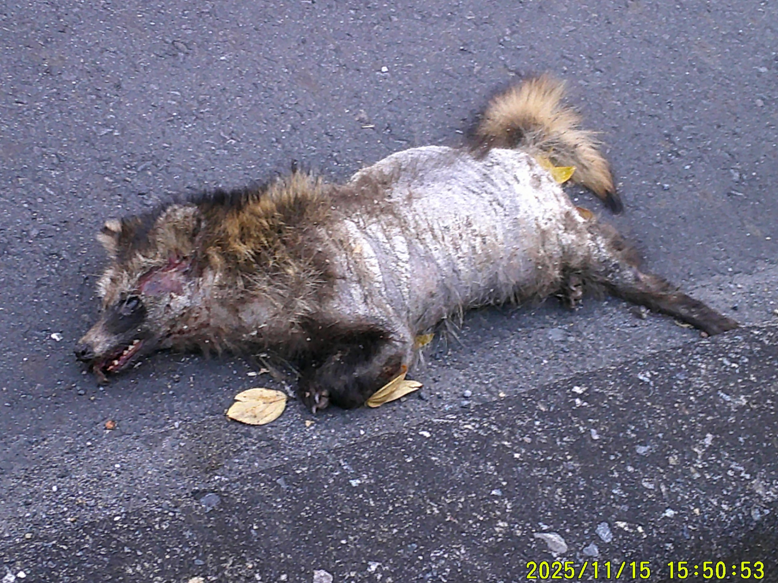 獣?? 動物名は?? タヌキ??車にはねられた。
