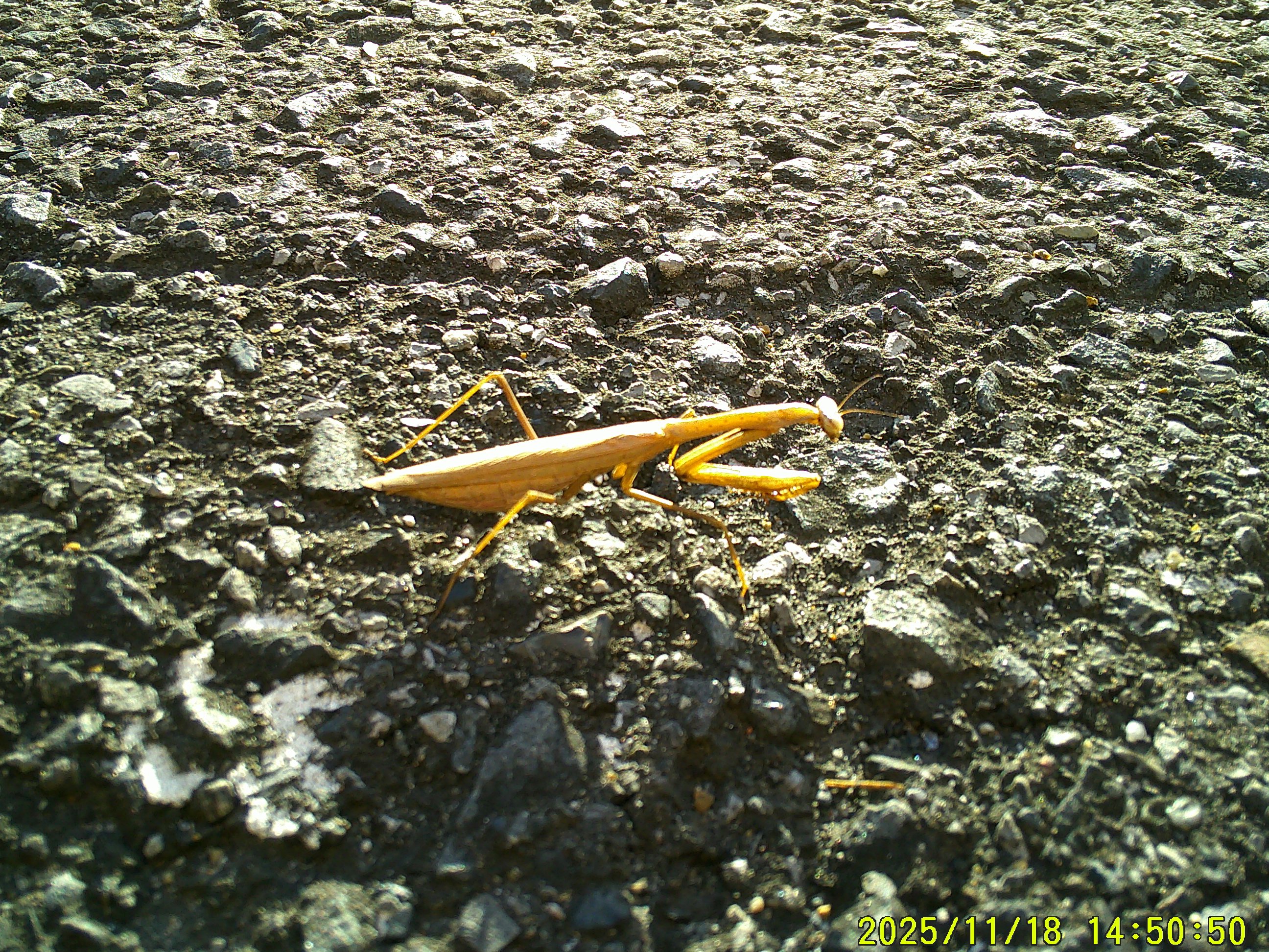 舟場踏切。昔は舟の、、、。道端に「黄色のカマキリ」が。名称不明 です。犬ではないな。