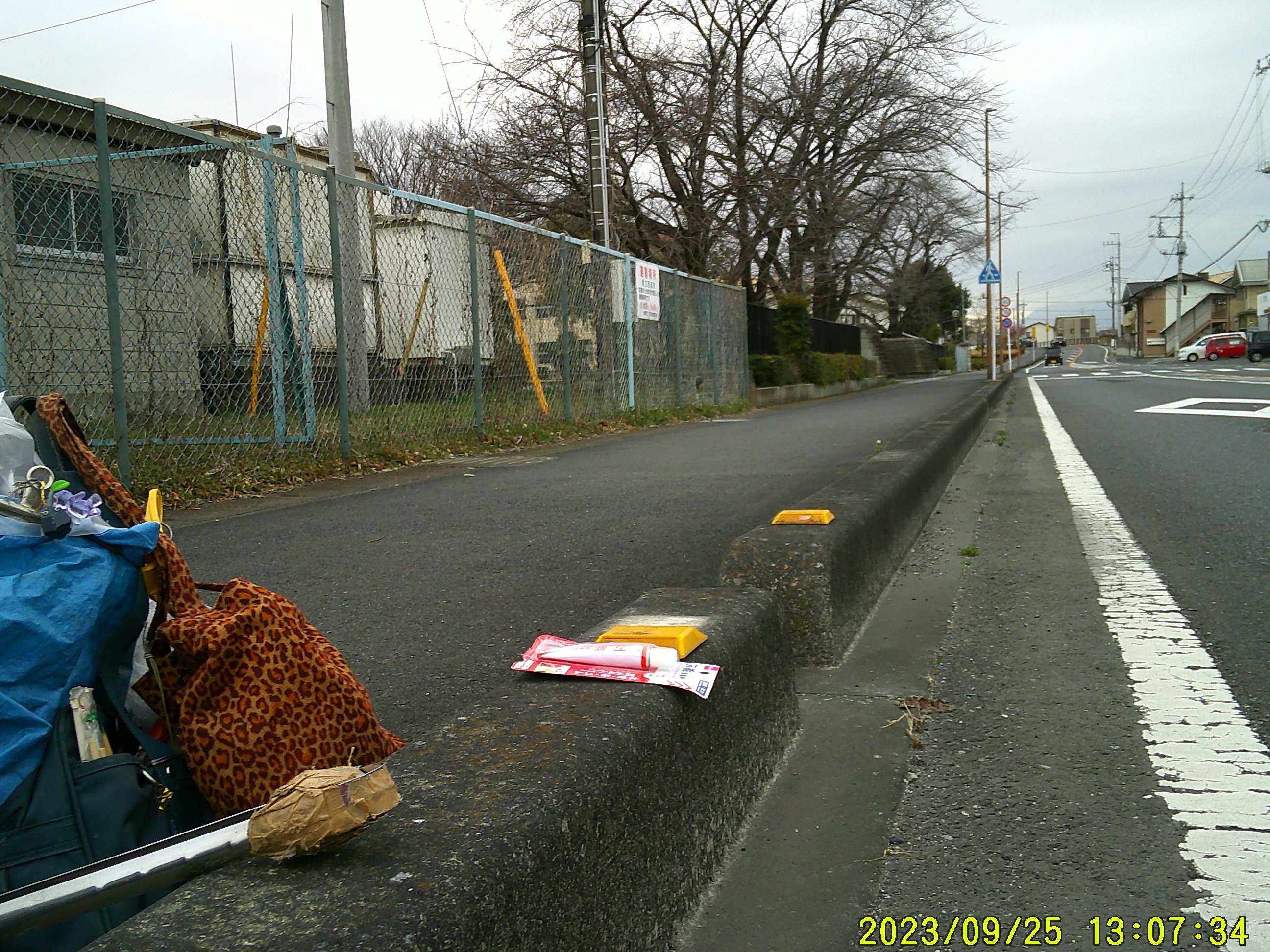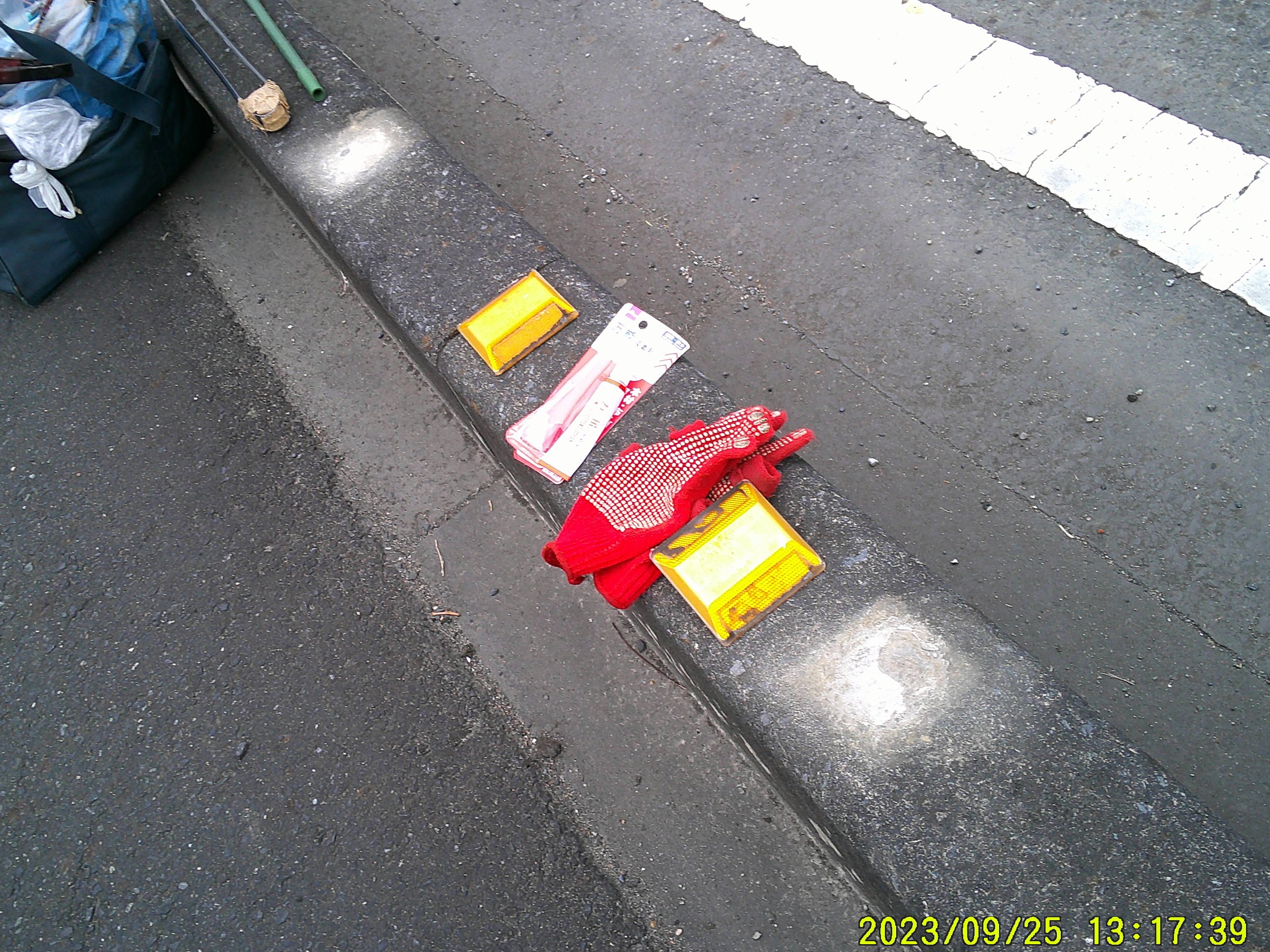 道端の 「反射器具」、大学前道路で4つも剥がれて。瞬間接着剤2本使って。